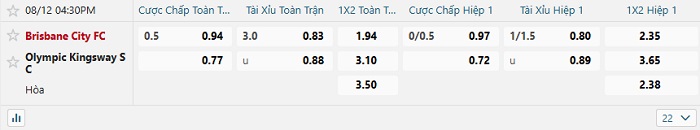 Tip kèo Châu Á full trận Brisbane City vs Kingsway SC