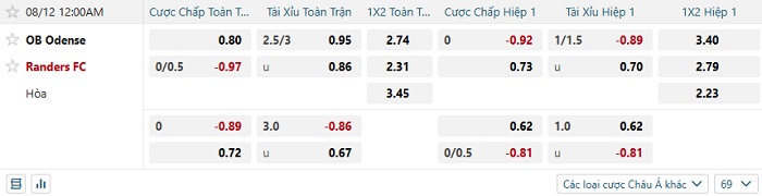 Tip kèo Châu Á hiệp 1 OB Odense vs Randers FC