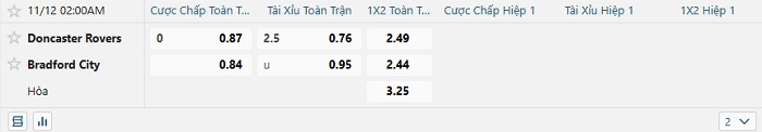 Tip kèo Châu Á full trận Doncaster Rovers vs Bradford