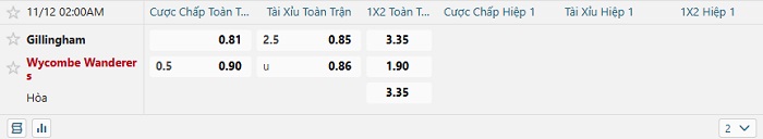 Tip kèo Châu Á full trận Gillingham vs Wycombe