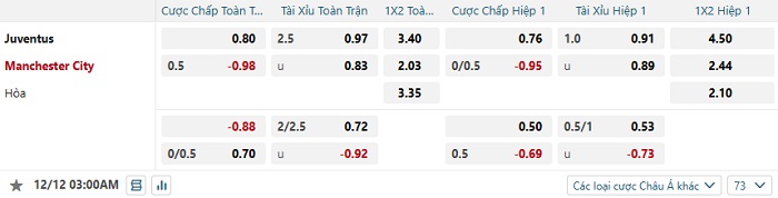Tip kèo Châu Á full trận Juventus vs Man City