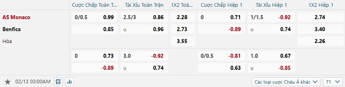 Tip kèo Châu Á full trận Monaco vs Benfica