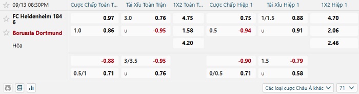 Tip kèo Châu Á full trận Heidenheim vs Dortmund