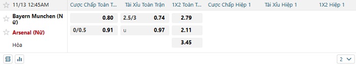 Tip kèo Châu Á hiệp 1 Bayern Munich vs Arsenal
