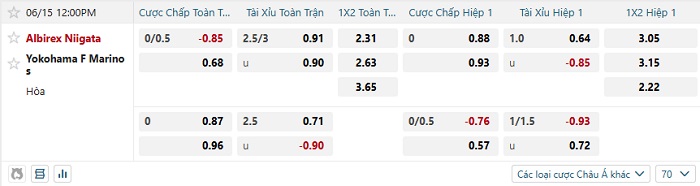 Tip kèo Châu Á hiệp 1 Albirex Niigata vs Yokohama F. Marinos