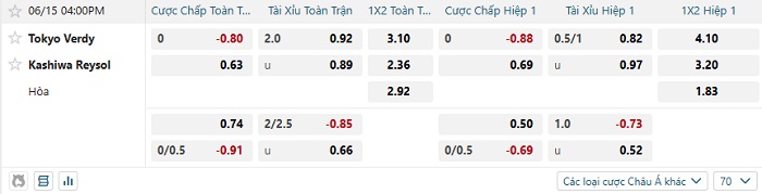 - Tip kèo cá cược Châu Á hiệp 1: Chọn Tokyo Verdy +1/4