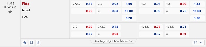 Tip kèo Châu Á hiệp 1 Pháp vs Israel