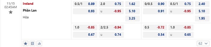 Tip kèo Châu Á full trận Ireland vs Phần Lan