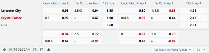 Tip kèo Châu Á full trận Leicester vs Crystal Palace