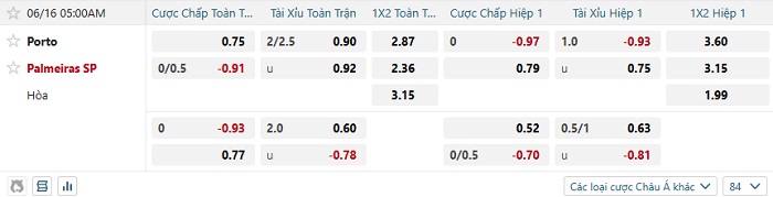 Tip kèo Châu Á full trận Porto vs Palmeiras