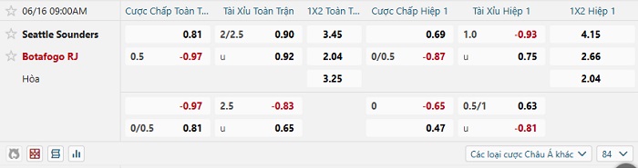 Tip kèo Châu Á hiệp 1 Seattle Sounders vs Botafogo