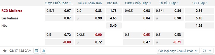 Tip kèo Châu Á full trận Mallorca vs Las Palmas