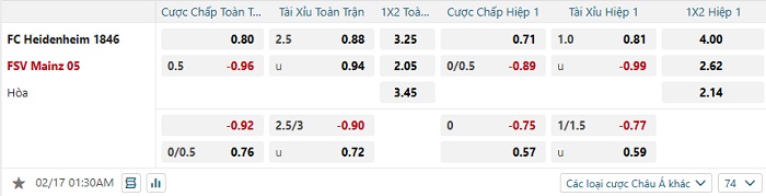 Tip kèo Châu Á hiệp 1 Heidenheim vs Mainz