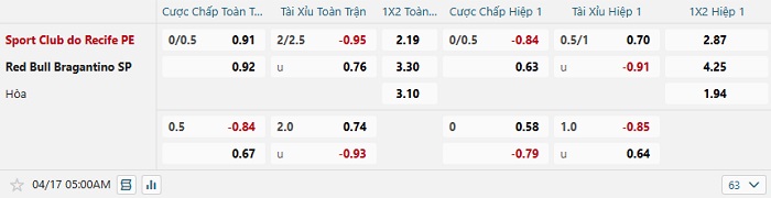 Tip kèo Châu Á full trận Sport Club do Recife vs Bragantino