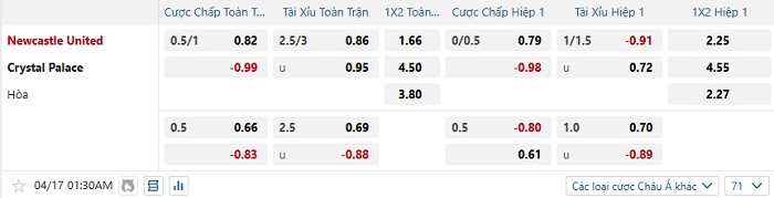Tip kèo Châu Á full trận Newcastle vs Crystal Palace