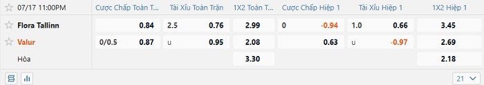 Tip kèo Châu Á hiệp 1 Flora Tallinn vs Valur