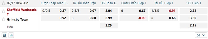 - Dự đoán tỷ số hiệp 1: Sheffield Wednesday 0 – 0 Grimsby
