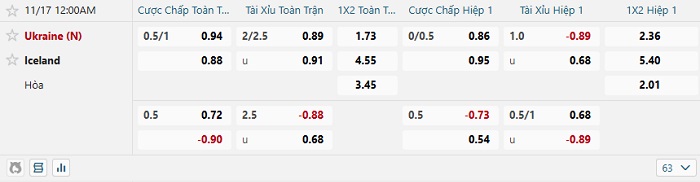 Tip kèo Châu Á full trận Ukraine vs Iceland