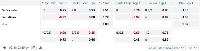 Tip kèo Châu Á full trận Gil Vicente vs Famalicao