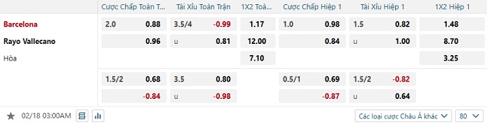 Tip kèo Châu Á full trận Barcelona vs Rayo Vallecano