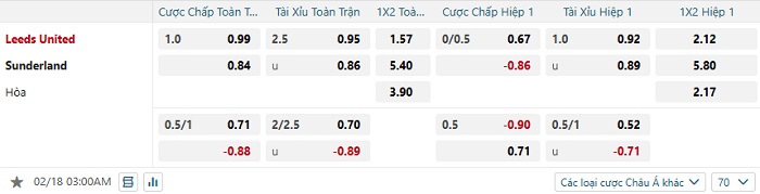 Tip kèo Châu Á full trận Leeds vs Sunderland