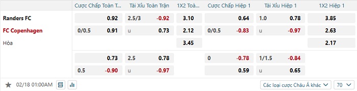 Tip kèo Châu Á full trận Randers vs Copenhagen