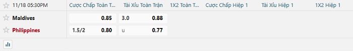 Tip kèo Châu Á hiệp 1 Maldives vs Philippines
