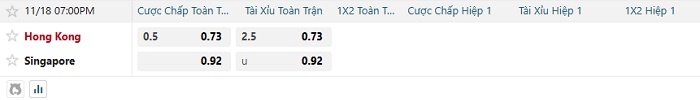 Tip kèo Châu Á full trận Hong Kong vs Singapore