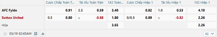 Tip kèo Châu Á hiệp 1 AFC Fylde vs Sutton United