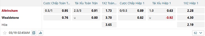 Nhận định trận đấu Altrincham vs Wealdstone: Áp đảo đối thủ hoàn toàn ở mọi khía cạnh, Altrincham còn được thi đấu tại sân nhà nên họ chắc chắn sẽ đánh bại Wealdstone ở vòng đấu này. Ở mức chấp châu Á -3/4, đội chủ nhà chính là lựa chọn an toàn nhất. Ngoài ra thì khi mà đội khách Wealdstone buộc phải lùi rất sâu đội hình sẽ khiến cho trận đấu này chỉ có tối đa 2 bàn thắng.
