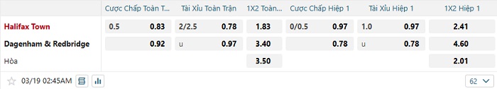 Tip kèo Châu Á hiệp 1 Halifax Town vs Dagenham