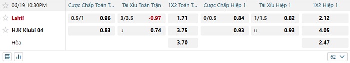 - Tip kèo cá cược Châu Á hiệp 1: Chọn Lahti -1/4