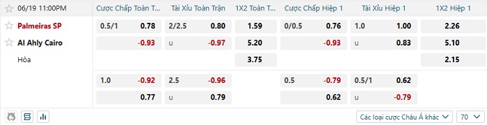 Tip kèo Châu Á full trận Palmeiras vs Al Ahly