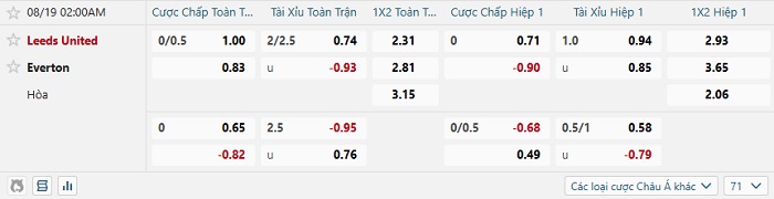 Tip kèo Châu Á full trận Leeds vs Everton
