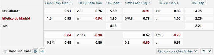 Tip kèo Châu Á full trận Las Palmas vs Atletico Madrid
