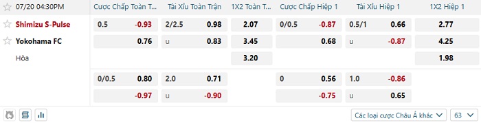 Tip kèo Châu Á full trận Shimizu S-Pulse vs Yokohama FC