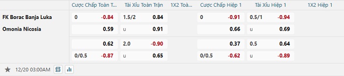 Tip kèo Châu Á full trận Borac Banja vs Omonia Nicosia