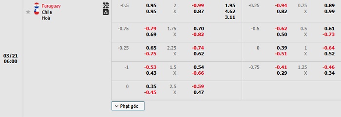 Tip kèo Châu Á full trận Paraguay vs Chile