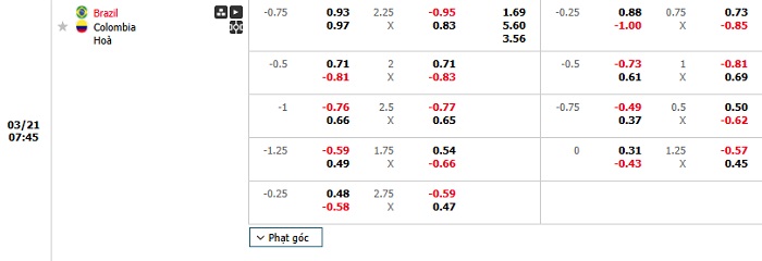 Tip kèo Châu Á hiệp 1 Brazil vs Colombia