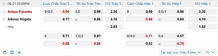 Tip kèo Châu Á hiệp 1 Avispa vs Albirex Niigata
