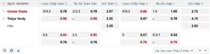 Tip kèo Châu Á hiệp 1 Cerezo Osaka vs Tokyo Verdy