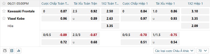Tip kèo Châu Á hiệp 1 Kawasaki Frontale vs Vissel Kobe