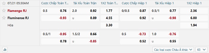 Tip kèo Châu Á full trận Flamengo vs Fluminense
