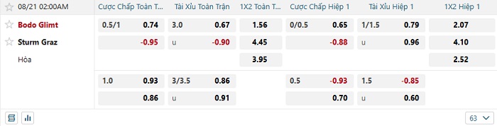 Tip kèo Châu Á full trận Bodo vs Sturm Graz