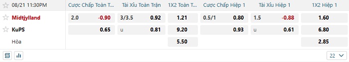 Tip kèo Châu Á hiệp 1 Midtjylland vs KuPS