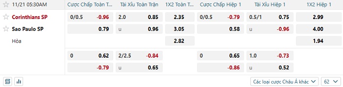 Tip kèo Châu Á full trận Corinthians vs Sao Paulo