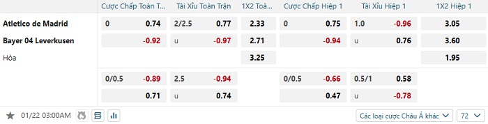 Tip kèo Châu Á full trận Atletico Madrid vs Bayer Leverkusen
