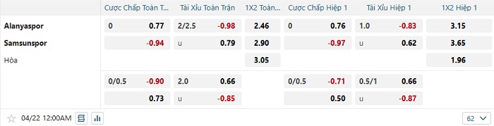 Tip kèo Châu Á hiệp 1 Alanyaspor vs Samsunspor