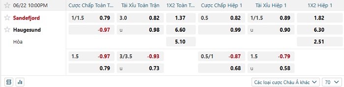 Tip kèo Châu Á hiệp 1 Sandefjord vs Haugesund