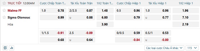 Tip kèo Châu Á full trận Malmo vs Sigma Olomouc